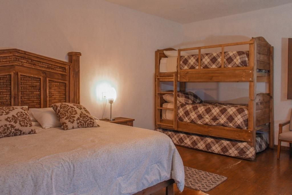 una cama king size & litera con 3 camas individuales